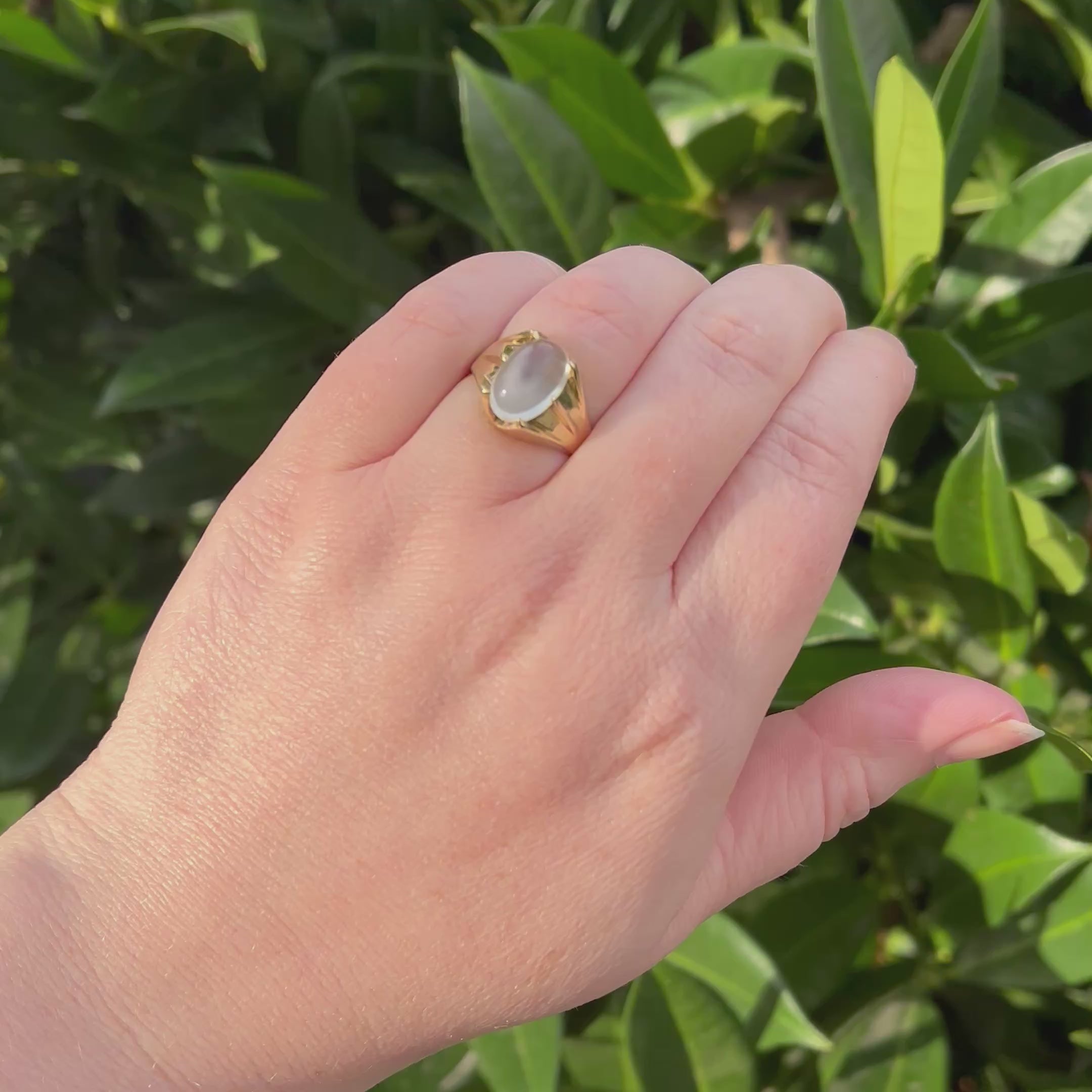 Vintage Moonstone 14k Gold Belcher Set Ring