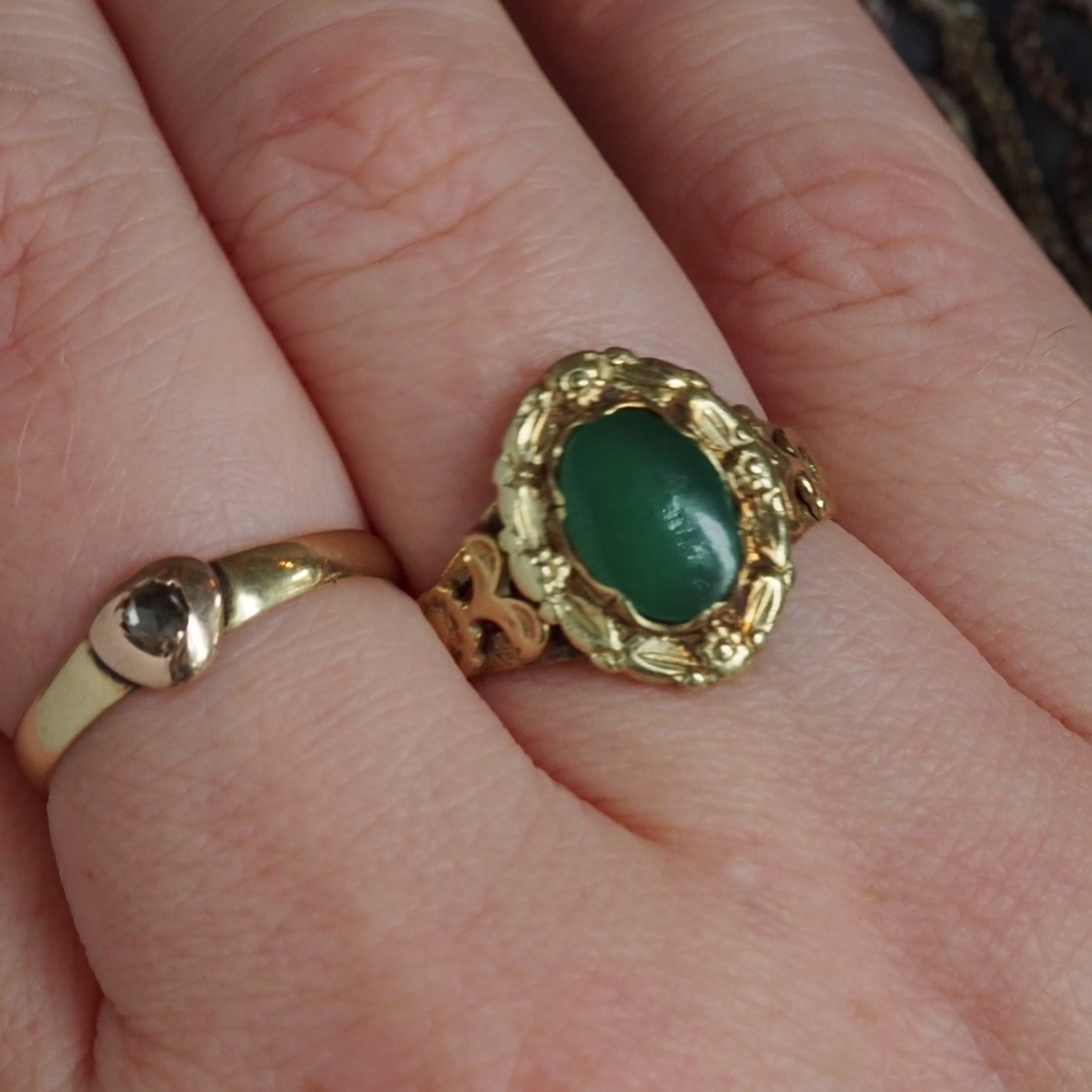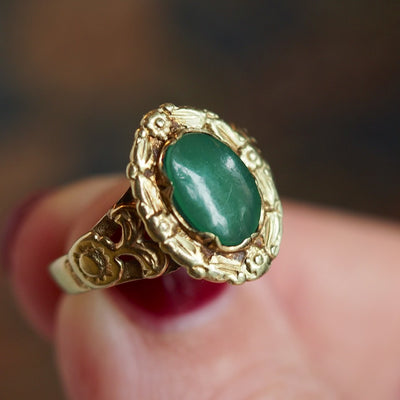 Antique Art Nouveau Chrysoprase 14k Floral Gold Ring