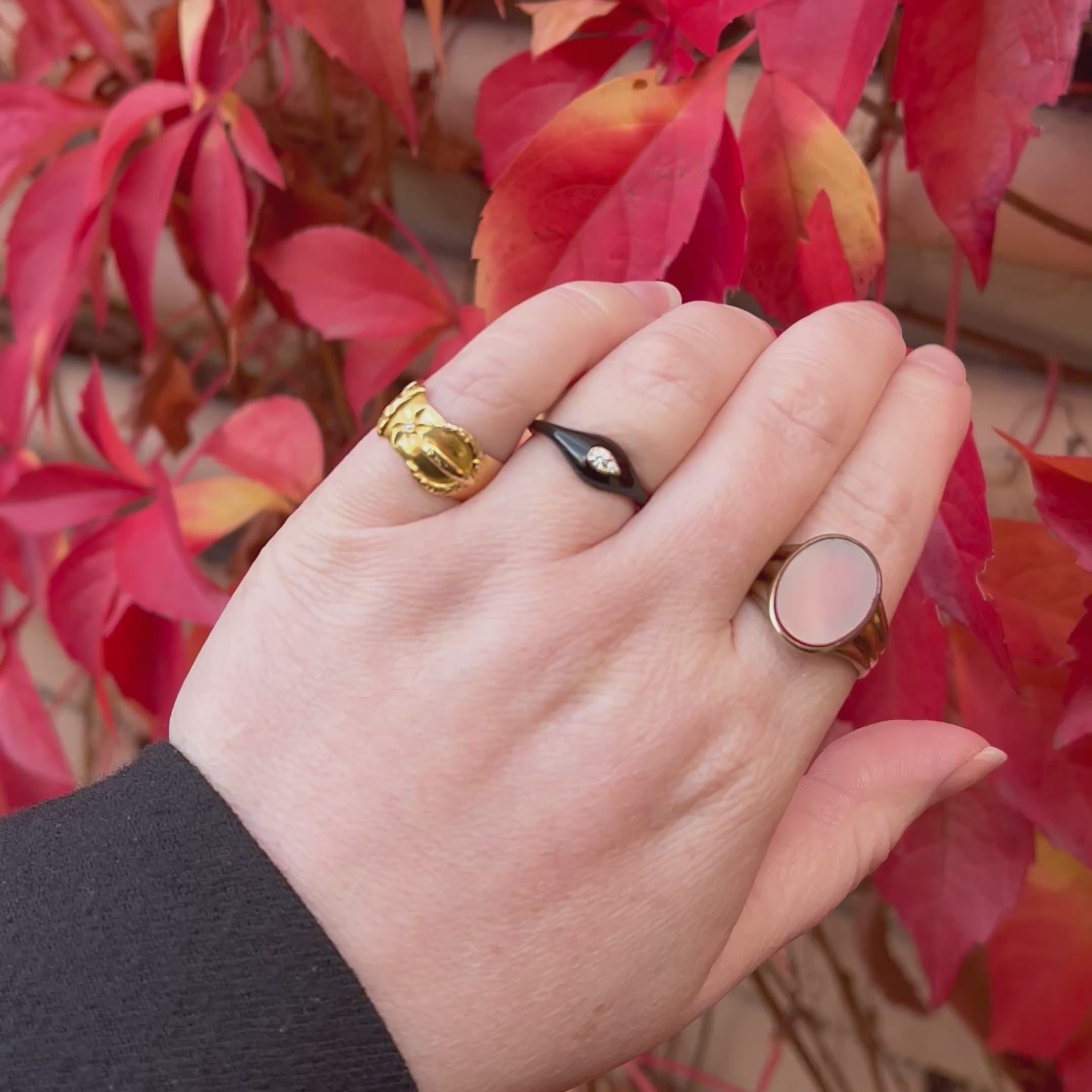 Belt buckle jewelry historically symbolizes fidelity and connection to another, whether in life or in mourning, and these pieces are highly collectable. This gorgeous antique English version was crafted in 1907 from 18k gold with two starry flush set old mine cut diamonds, perhaps representing a couple in love. The distinctive buckle elements have been embellished with beautiful ornate elements which rise in contrast to the plushy satiny dome below. This piece has a full suite of hallmarks, which is always such a treat to find.