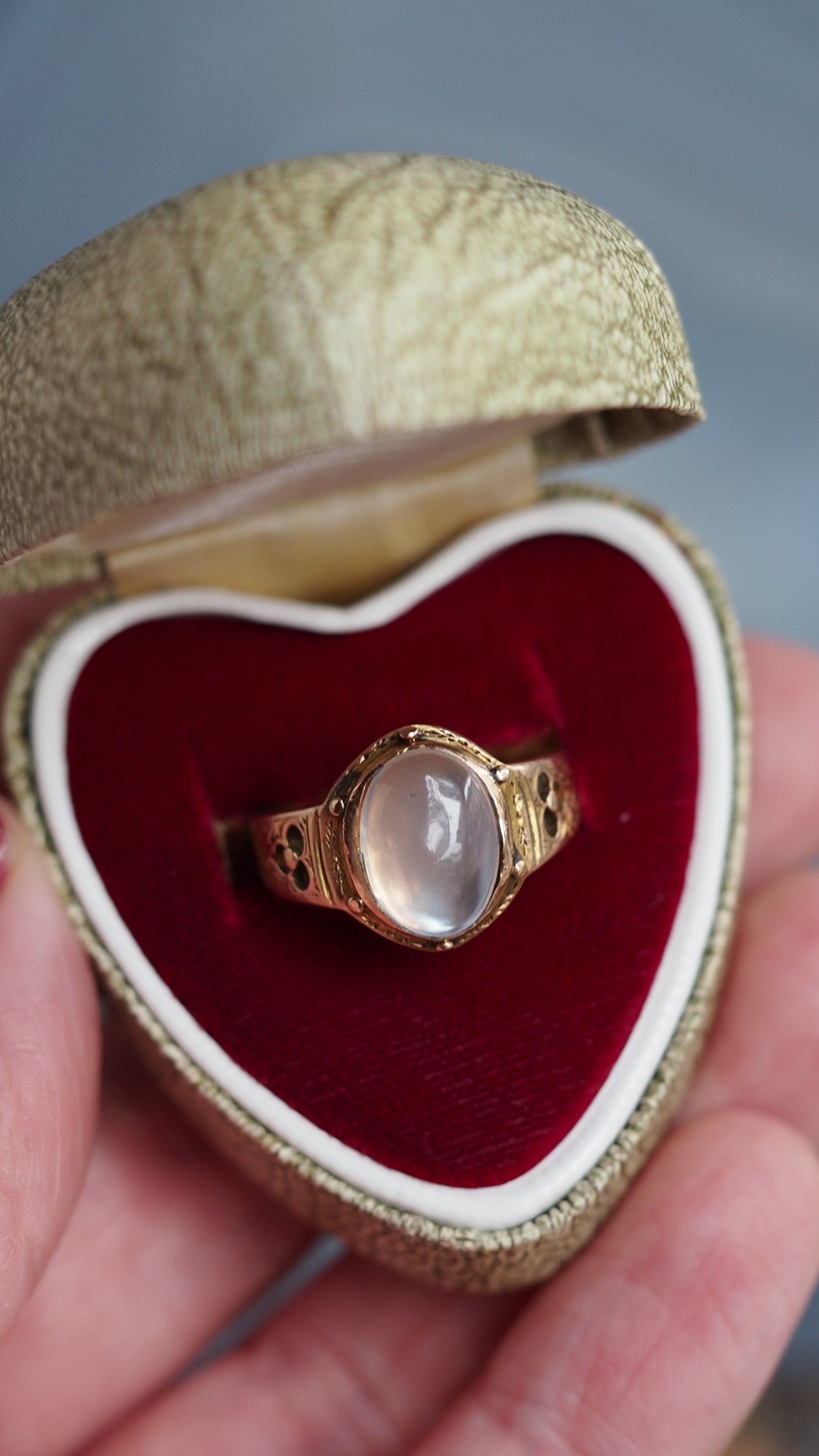 Antique c. 1868 English Moonstone 15k Gold Ring