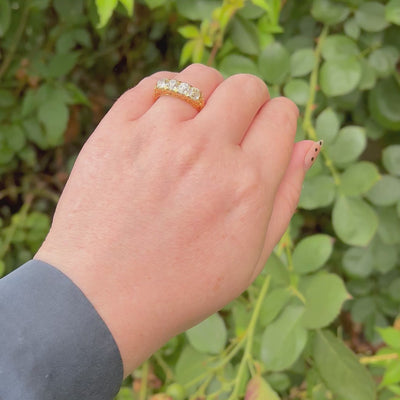 Antique Old Mine Cut Diamond 18k Gold Half Hoop Engagement Ring