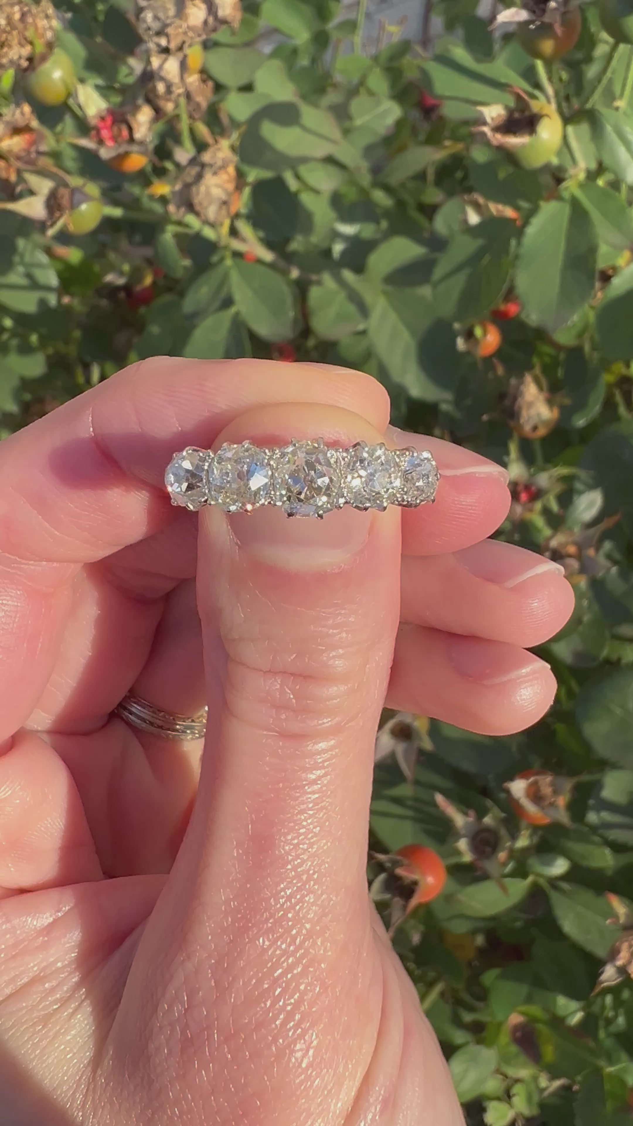 Antique Platinum 3.34ctw Five Stone Old Mine Cut Diamond Ring