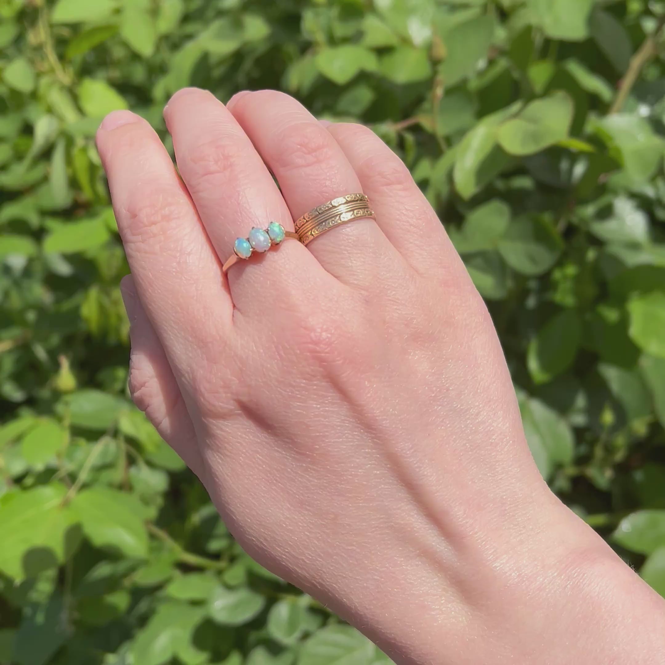 Antique Victorian Opal Trilogy 14k Gold Ring