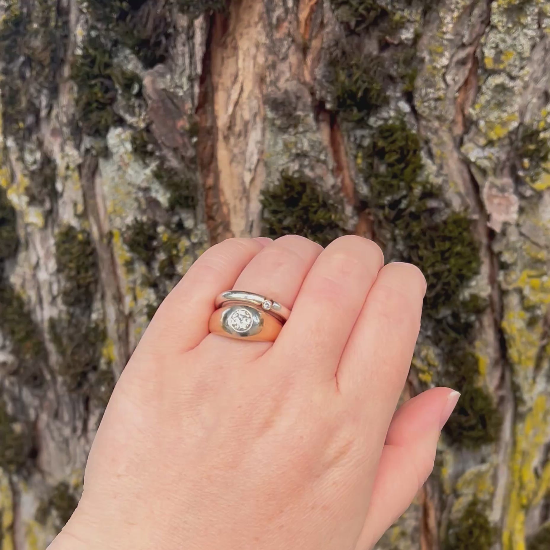 Vintage c. 1951 Flush Set Diamond 14k White and Yellow Gold Dome Engagement Ring