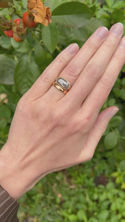 East West Salt and Pepper Rose Cut Diamond Solitaire 14k Gold Engagement Ring