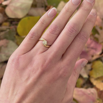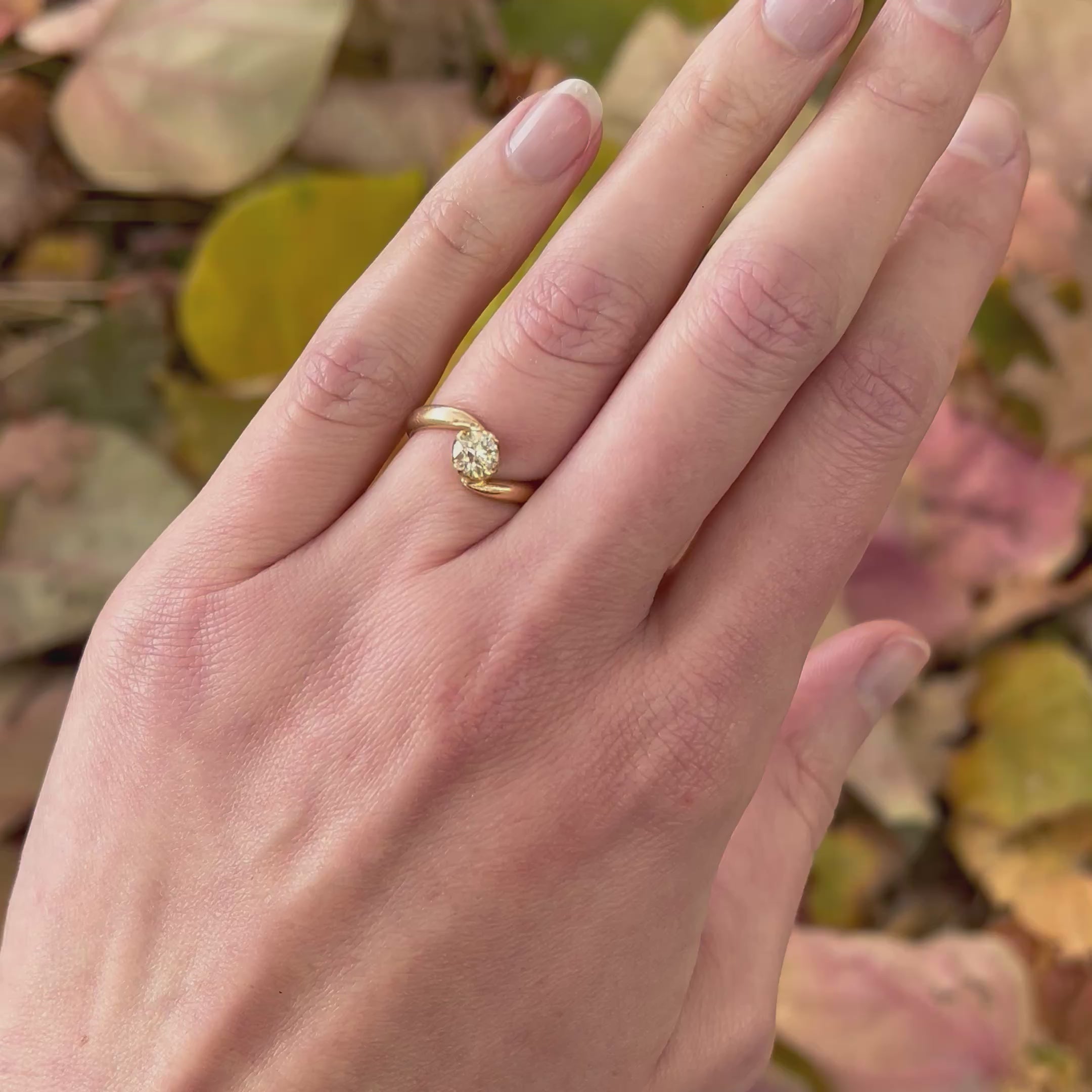 Mid-Century Light Yellow Old European Cut Diamond 14k Gold Bypass Solitaire Engagement Ring