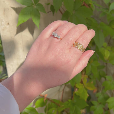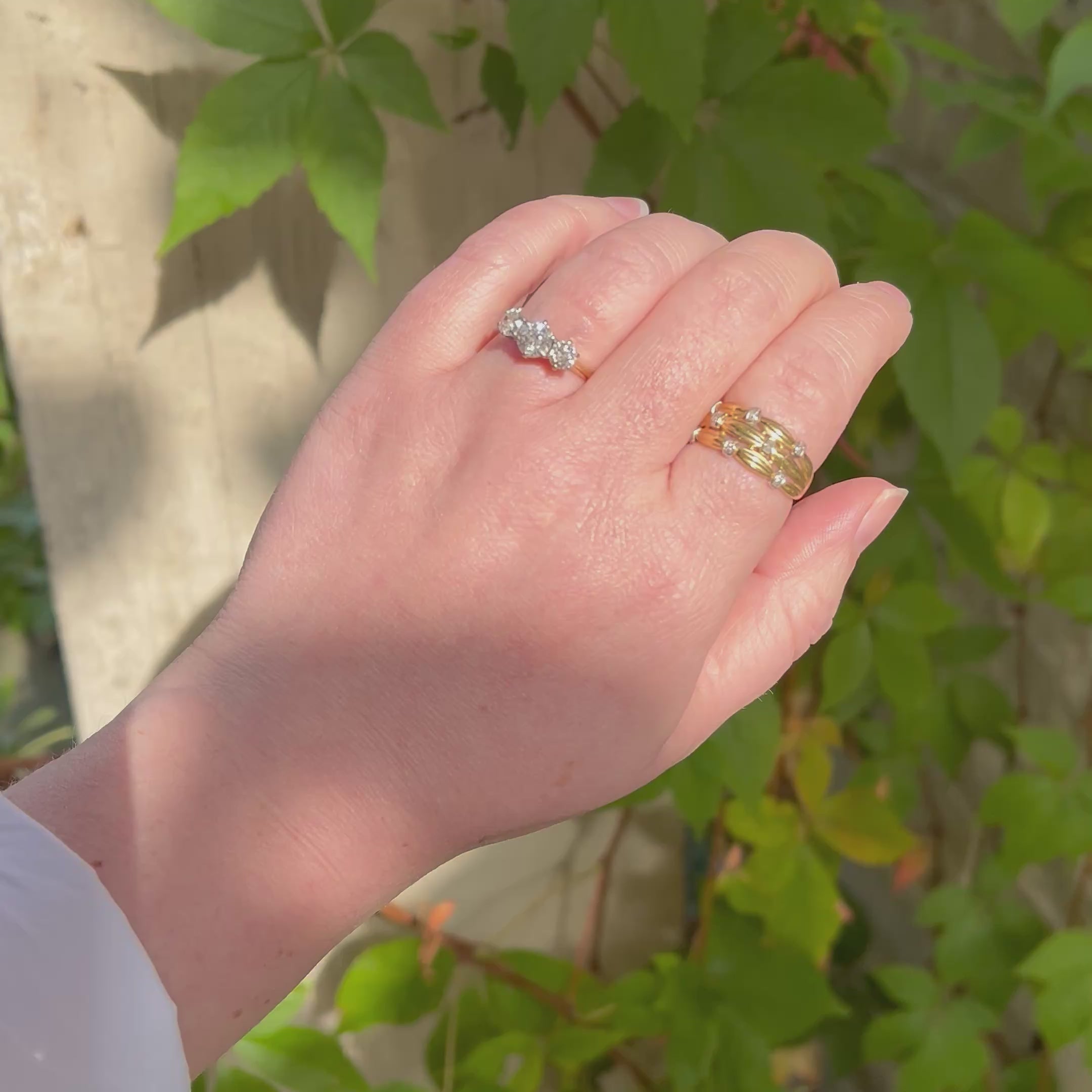 Vintage Reeded Diamond 18k Gold Tapered Band