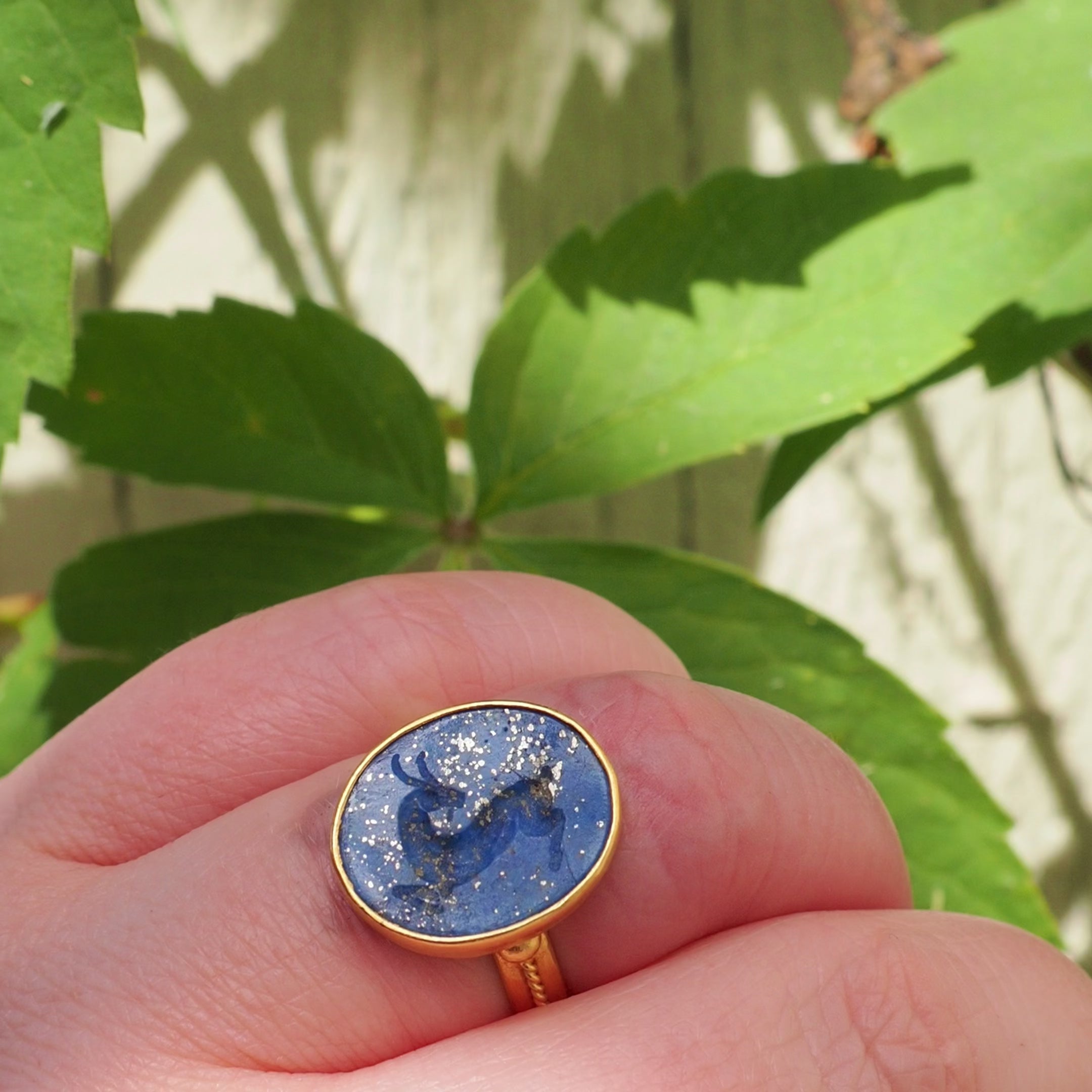 Vintage 22k Gold Lapis Goat Intaglio Ring