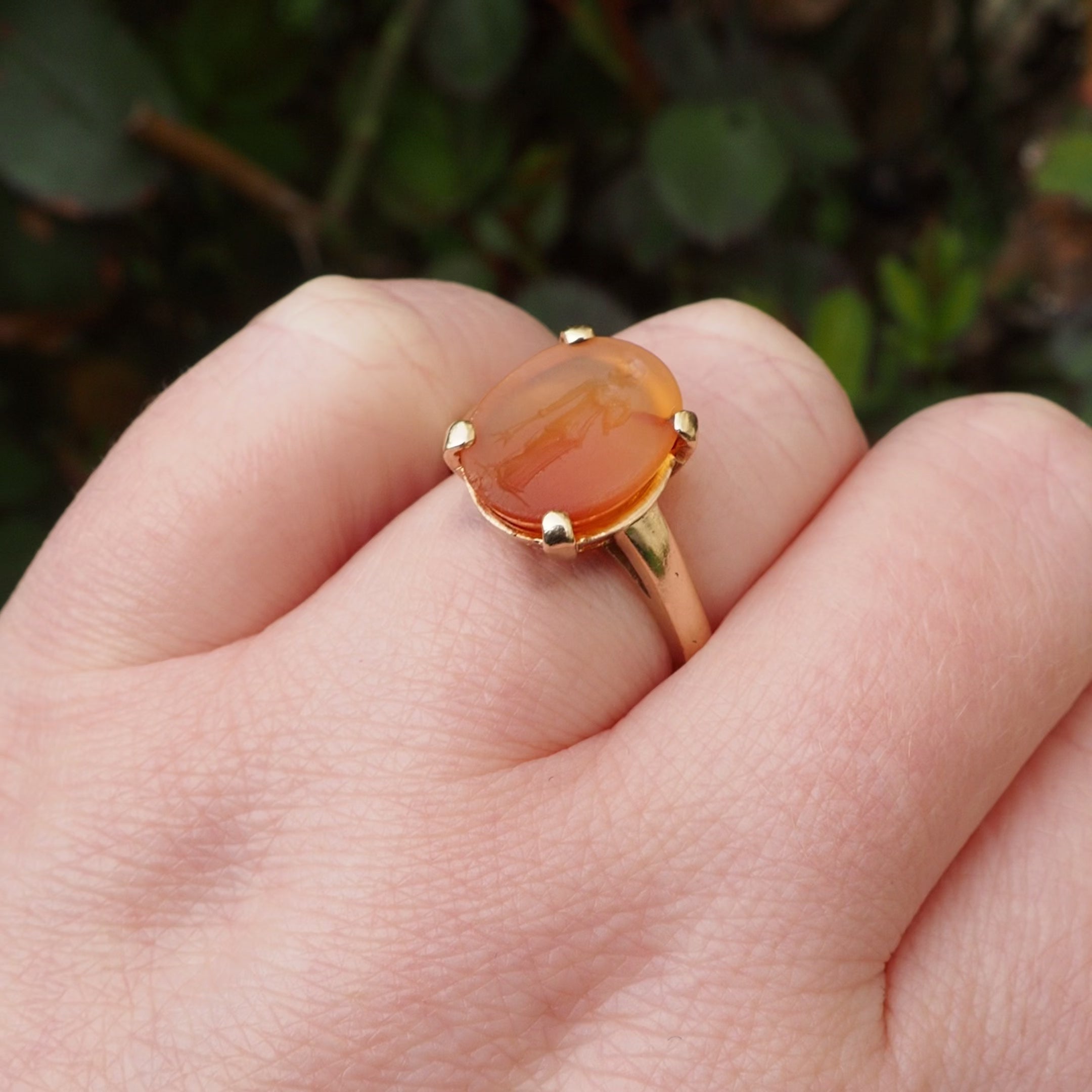 Vintage Carnelian Fortuna Intaglio 14k Gold Ring
