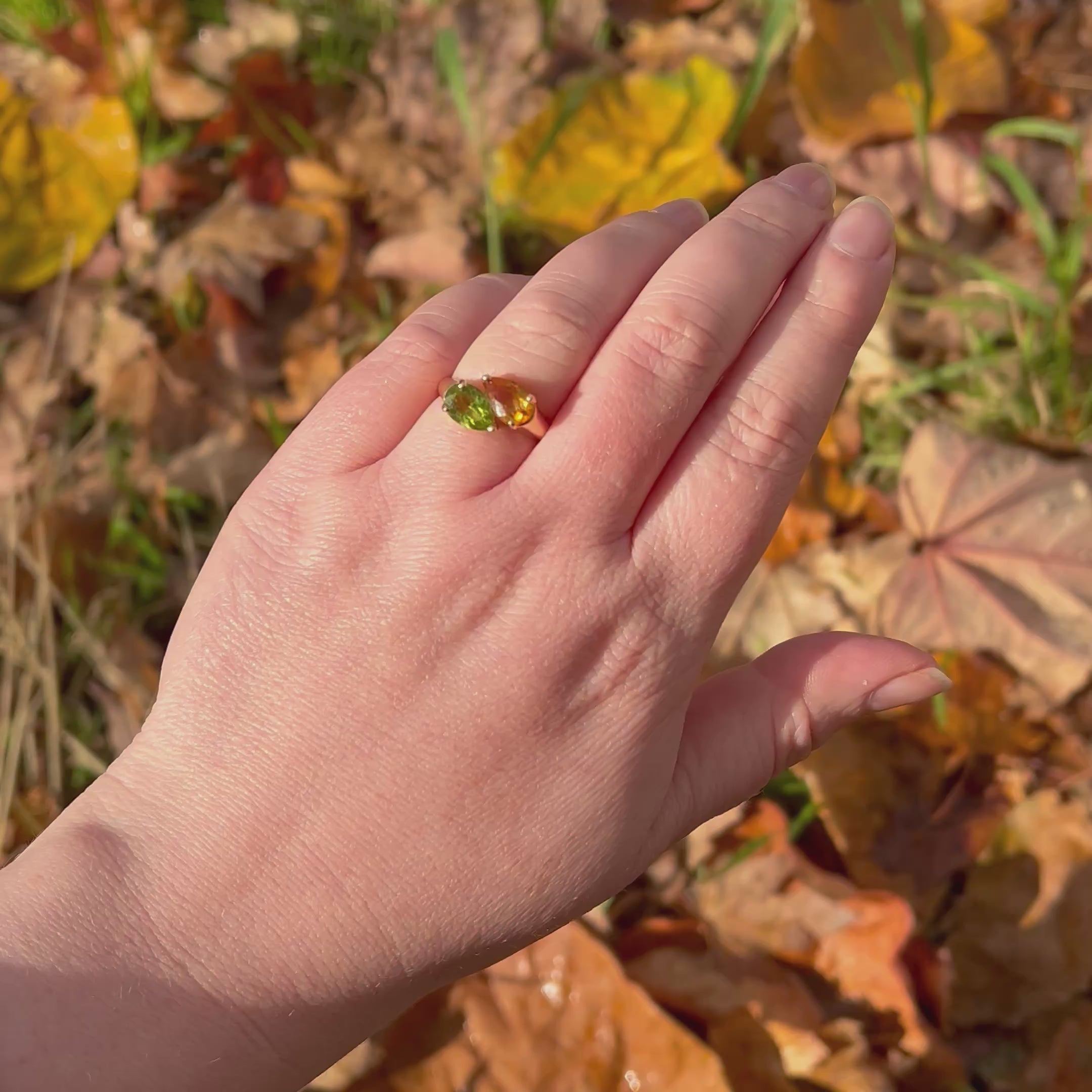 Vintage Pear Shaped Peridot and Citrine 14k Gold Ring